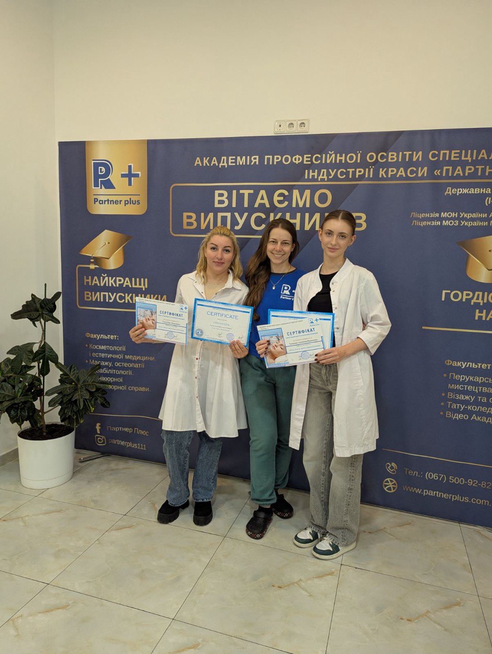 В Партнер + закінчила курси косметології та отримала гарну базу знань та кваліфікованих спеціалістів по предметам. Здала державний екзамен та є в реєстрі. Дуже рекомендую цю академію. Дякую